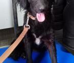 Этой собаке два года, рост в холке - 44 сантиметра, вес - 12 килограммов. Окрас чёрный, на груди - …