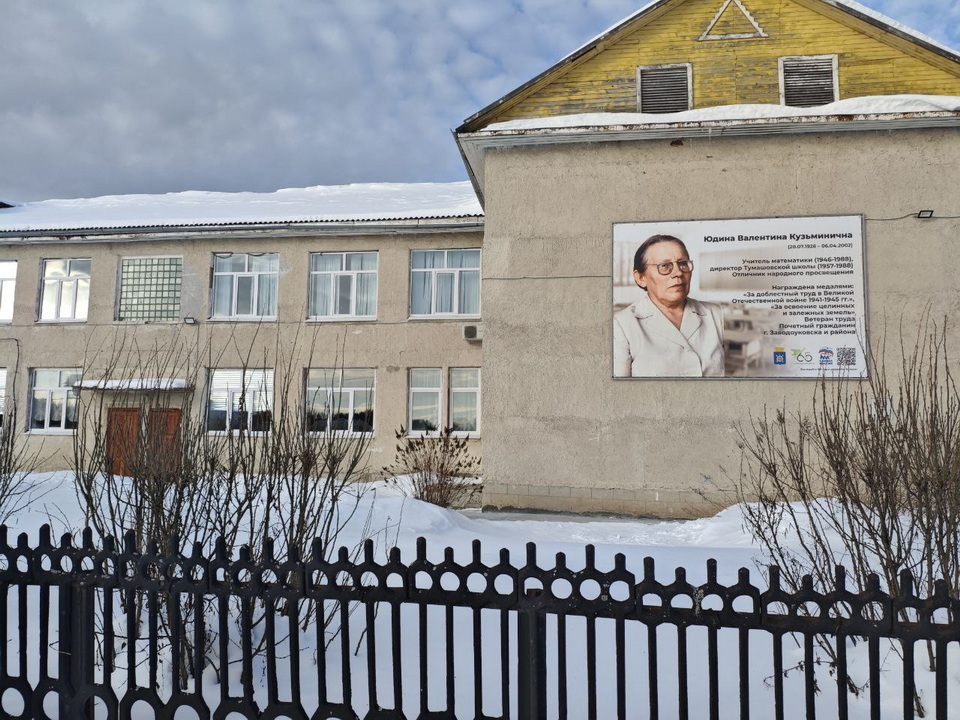 К всероссийскому патриотическому проекту «Лица героев» в муниципальном округе присоединилось ещё одно образовательное учреждение – Тумашовская начальная школа. На фасаде её здания установлен портрет педагога Валентины Юдиной.